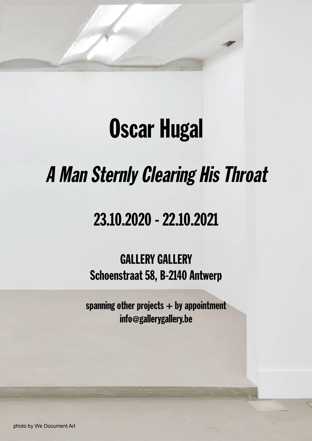 Next to the short-term projects that have taken place in recent years, GALLERY GALLERY launches a new concept. Each year, one artist will be invited to present a work that will be exhibited for one full academic year. The work will be on continuous display spanning all other projects and can be visited by appointment. Oscar Hugal has the honor of being the first to kick off this new series. The inauguration of A Man Sternly Clearing His Throat coincides with the pre reopening of a newly renovated GALLERY GALLERY during Borger on 23/10/20.